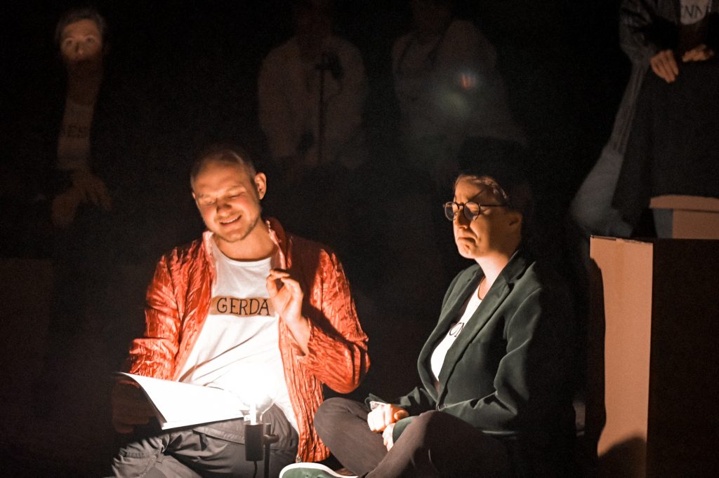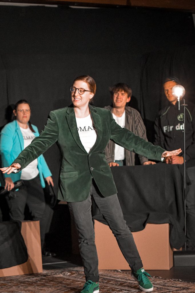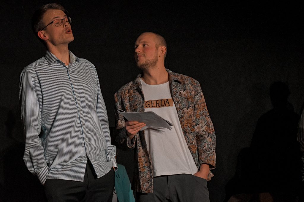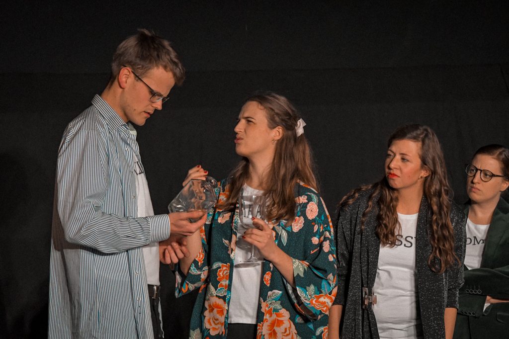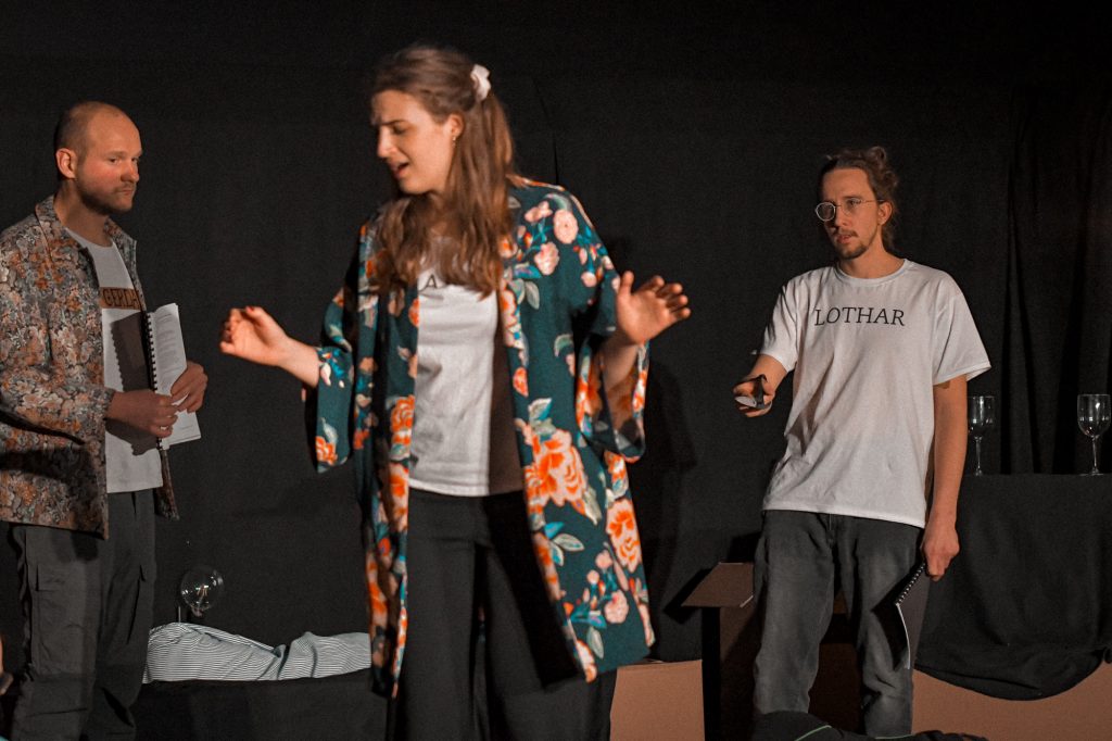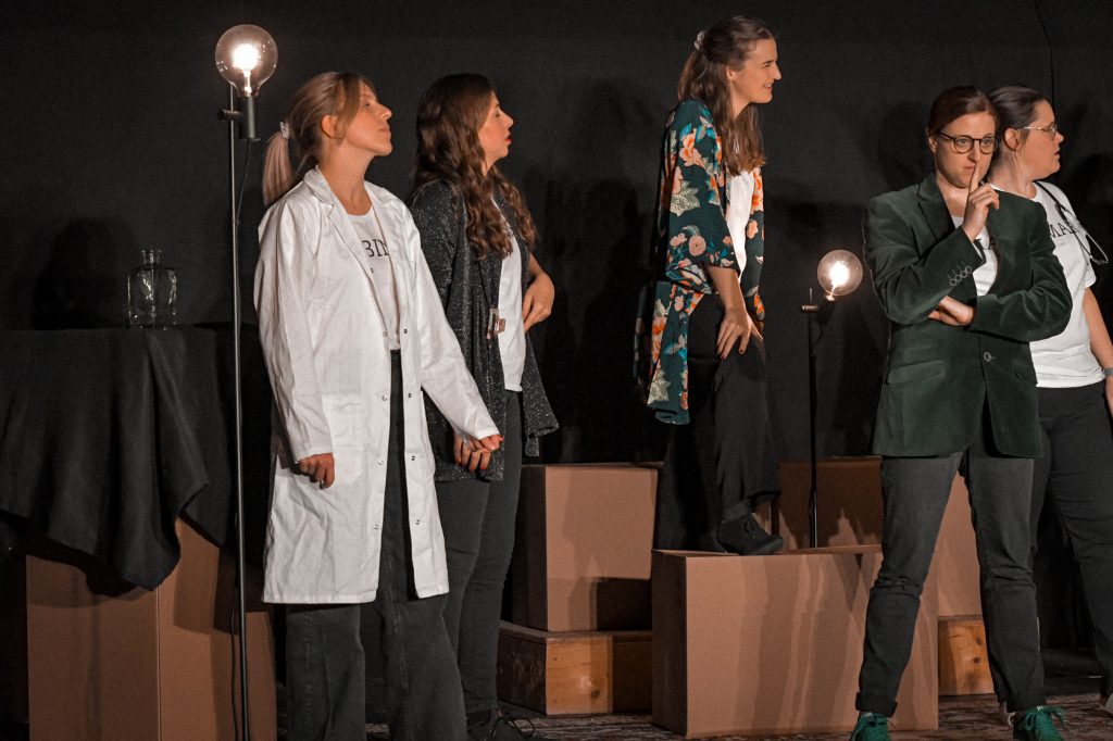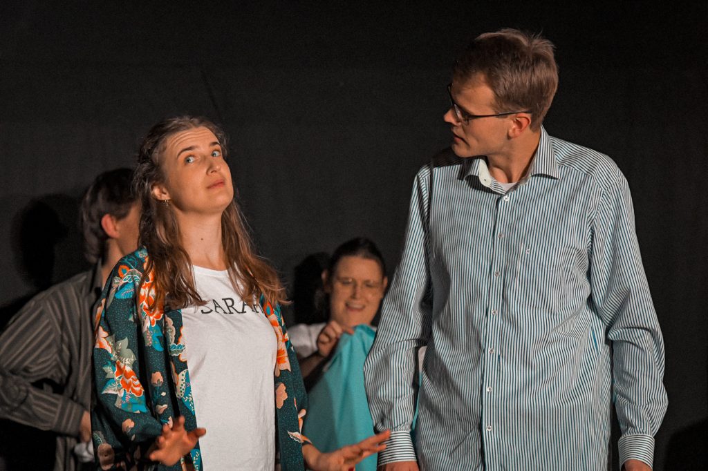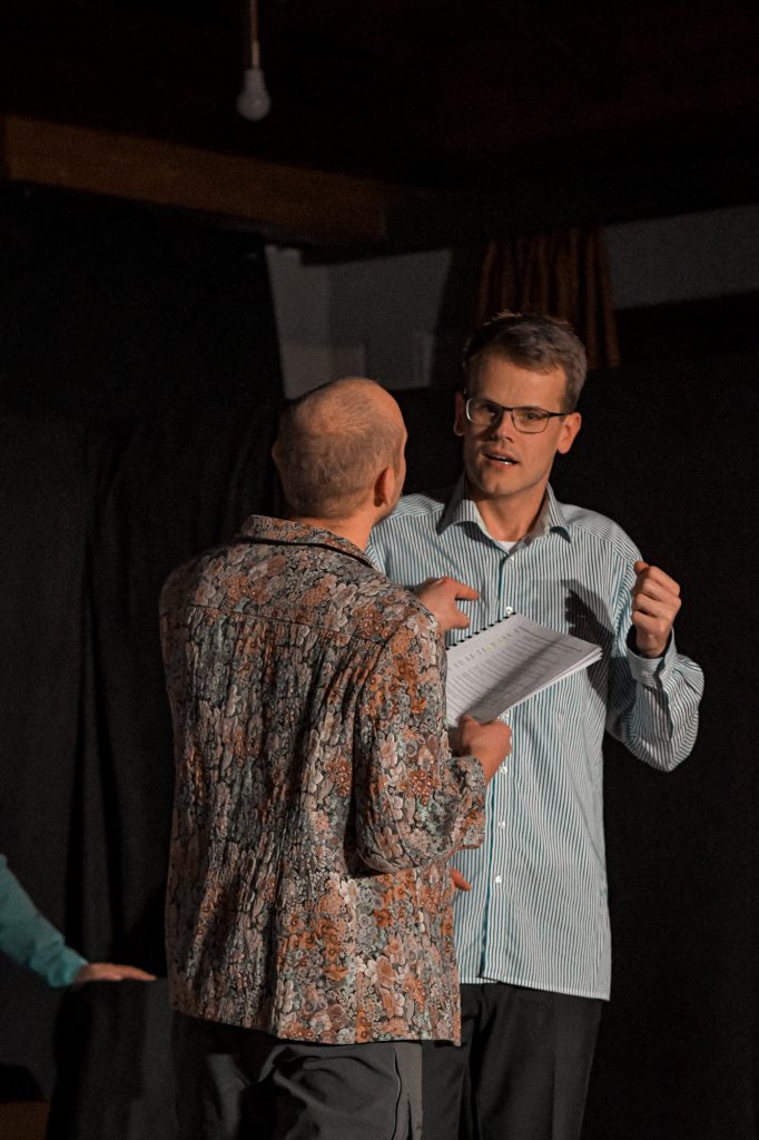Aber eigentlich ist es gerade deshalb ein perfektes Stück für eine Theatergruppe, denn im Kern ging es ja genau darum: ums Theaterspielen. Die Charaktere begegnen sich auf der Bühne, tauschen aus, was sie über sich selbst und einander wissen. Sie rekonstruieren eine Geschichte, die sie alle verbindet und die doch gerade erst am Entstehen ist.