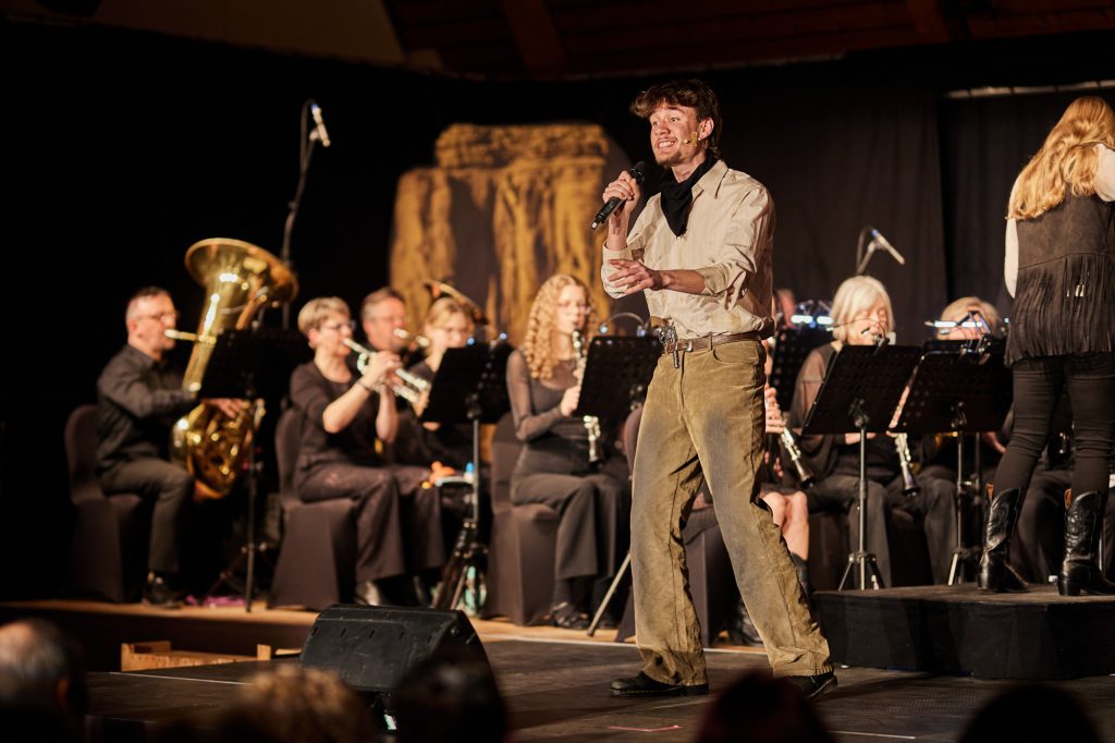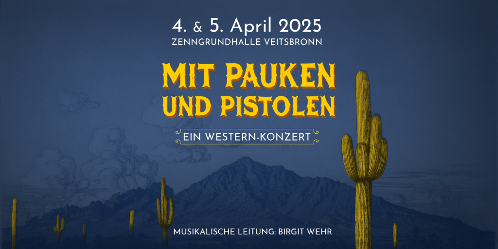 Haltet euch fest – es wird ein wilder Ritt! Dieser gut gemeinte Rat ging beim diesjährigen Frühjahrskonzert an unsere Zuschauer:innen – immerhin ging es thematisch diesmal in den Wilden Westen. Gleich zweimal durften wir unser Western-Konzert Mit Pauken und Pistolen vor ausverkauftem Haus in der Zenngrundhalle Veitsbronn spielen – am 4. und 5. April 2025.
