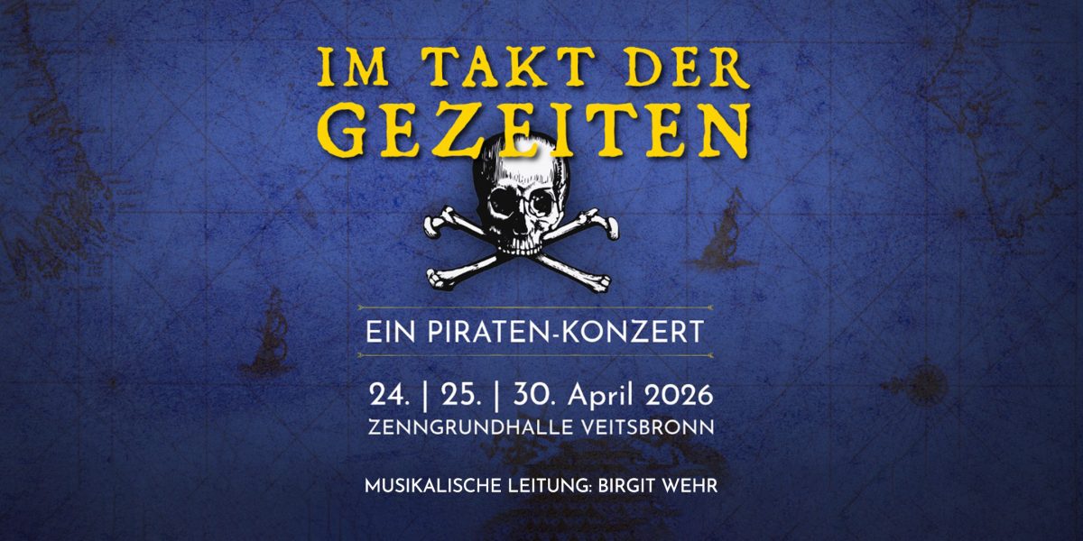 Wir stechen in See! Unser diesjähriges Frühjahrskonzert steht ganz im Zeichen der Piratenflagge. Unter dem Motto Im Takt der Gezeiten erwartet euch ein Konzertabend, der musikalisch über die Weltmeere führt – zwischen ruhiger See und stürmischen Gewässern, Fluch und Freiheit.